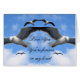 Les mouettes volent dans le design d'art miroir sous le ciel bleu nuageux. Vous pouvez customiser cette carte postale pour n'importe quelle occasion.