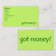 Un carte de visite vert avec la parodie "a de l'argent ?". Il y a quelques autres nuances de vert qui fonctionnent bien avec l'image sur ces cartes de profil.