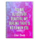 Célébrez votre beauté divine et valorisez avec ce carnet chrétien inspirant et personnalisable. Avec le verset puissant de Chant de Salomon 4:7, "Vous êtes tout à fait belle, ma chérie; il n'y a pas de défaut en vous", ce journal est un rappel quotidien de la profondeur que vous êtes aimés et chéris. Placé sur un étonnant arrière - plan floral rose et violet, ce carnet en spirale est un cadeau parfait pour les filles ados, les femmes de foi ou toute personne qui a besoin d'un rappel de leur beauté divine. Ajoutez votre propre nom ou celui d’un proche pour une touche personnelle. Qu'il s'agisse de journalisation de prières, de notes de sermon, de dévotions ou de pensées quotidiennes, ce carnet rempli de foi est à la fois beau et édifiant.