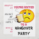Une personne pendue avec des mots disant que vous êtes invité à une soirée de gueule de bois fait une bonne fête Invitation.