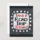 "Take a Road Trip Today" est un design de texte mignon en gris avec du texte noir et rouge. Il est installé en forme d'accent blanc et de mignons pois blancs l'entourent.