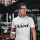 Cette chemise est un compagnon élégant et confortable pour vos voyages. Que vous soyez en train de découvrir de nouvelles villes, de vous détendre sur une plage ou de vous immerger dans différentes cultures, ce T-shirt célèbre la joie du voyage et les possibilités infinies qu'il apporte. Laissez le monde être votre terrain de jeu et portez cette chemise comme rappel pour toujours dire "Voyage" et embarquez pour de nouvelles aventures.