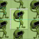 Lustiges alien mit Kopfhörer und Kopfhörer der virtuellen Wirklichkeit.
