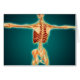 Vue arrière du squelette humain avec système nerveux, artères et veines.