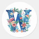 "'W' schöne Blumenmonogramm" Runder Aufkleber