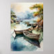 Poster von Rowboats schweben sanft in einem ruhigen, türkisfarbenen Gewässer, umgeben von Felsen und üppiger Vegetation. Das weiche, diffuse Licht schafft eine Atmosphäre der Ruhe und der natürlichen Schönheit.