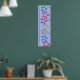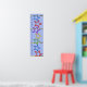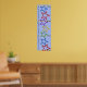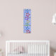 Farbenfrohe Sterne messen das Wachstum des Kindes vor einem hellblauen Hintergrund. Gelbe Linien auf 2 Metern (vom Boden bis zur korrekten Befestigung), 1,50 m, 1,5 m und 5 m. Inches, die zwischen Linien 1-12 und 12 (auf gelber Linie) markiert sind.