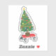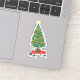 Weihnachten auf einer Rolle... Niedliches Weihnachtskunstdesign. Roter Wagen mit einem Weihnachtsbaum für eine Fahrt. Ein ansprechendes Design, ideal für Weihnachtsgeschenke und Partys. Ideal für Weihnachtsdekorationen, Kleidung und Geschenke.