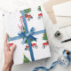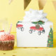 Weihnachten auf einer Rolle... Niedliches Weihnachtskunstdesign. Roter Wagen mit einem Weihnachtsbaum für eine Fahrt. Ein ansprechendes Design, ideal für Weihnachtsgeschenke und Partys. Ideal für Weihnachtsdekorationen, Kleidung und Geschenke.