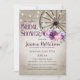Roue de wagon rustique et violet fleurie invitation douche nuptiale avec bois de grange et lampes à cordes design. Elégante invitation à la douche rustique avec disposition de texte moderne peut être modifiée comme préféré.