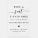 Chic Hochzeit nicht zugewiesene mattierte Acrylzeichen, dass "Wählen Sie einen Sitzplatz, auf beiden Seiten, Sie werden von den Bräutigam und Braut geliebt" in einfachen Typografie und ein elegantes Drehbuch mit Wimpern, ein Herz und Ihre Namen und Hochzeitstag.