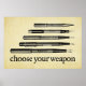 Der Stift ist mächtiger als das Schwert. Wähle deine Waffe aus.