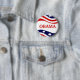 Wahlkampfschaltfläche Obama mit roten Buchstaben und US Flagge.