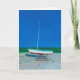 A painting of a single sailboat in a boat yard on a late spring day with a deep blue sky in the background. The artwork is about waiting for summer to start in New England and the fun on the water that comes with living in a coastal town.