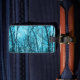 Kristallisierte, besondere Effekte, half zu schaffen, dieses grafische Foto, eines bewaldeten Waldes, am späten Nachmittag ausgestellt in den Farben Schwarz, Azurblau und Weiß.