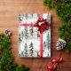 Weihnachts-Urlaubspapier mit einem Waldthema aus Kiefernwäldern und Rentieren, in einem wiederholten Muster mit leicht fallendem Schnee bemalt.