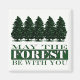Ein grafisches Walddesign mit dem Text "Möge der Wald bei dir sein" auf einem Magneten.
