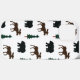 Ein Muster mit einem braunen Elch und einem schwarzen Bären und einem Baum.