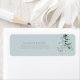 Rücksende-Aufkleber. Waldflächen Wasserfarben Bäume. Hintergrund aus Meerglas. Weiche Töne.