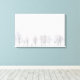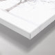 Leinwand von einem minimalistischen Bild einer Reihe karger Bäume während eines Blizzards im Winter in einem komplett schneeweißen Hintergrund. Dies ist ein Farbbild, obwohl es wie b/w aussieht.