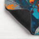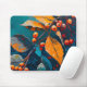 Fall Waldland Blätter und Rowan Beeren Mouse Pad. Abstraktes modernes Herbstblumenöl bemalt Kunst in blau-roten Orangenfarben.