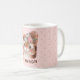 Niedliches Eichhörnchen mit einer Blume auf seinem Kopf. Der Hintergrund ist rosa mit Punkten. Optionales Monogramm