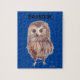 Wasserfarbe der Eule, personalisierte Rätsel. Kinderzimmer Kunst. Kinderkunst. Personalisiert mit dem Namen deines Kindes.