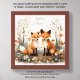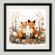 Waldlandschaftsplakat mit 2 niedlichen Füchsen. Erdtöne und sanfte Farben von grau, orange, braun. Ideal für Kinder oder Kinderzimmer.