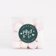 Auf der sonnigen Gastgeschenk Hochzeit-Aufkleber finden Sie auf einem dunkelwaldgrünen Hintergrund eine weiße, handgeschriebene Schrift, die mit Herzen Akzente setzt. Personalisieren Sie mit Ihren Namen und Hochzeitstermin.