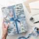 Blaupastellpapier von Waldhirschen in den schneebedeckten Bäumen