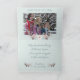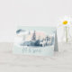 Weihnachtsgrüße | Foto Inside - Let it Snow - Schöne Wasserfarbenwelt - verschneite immergrüne Kiefernbäume, mit zwei magischen weißen Hirschen im Vordergrund - in einem Ort für Ihr Foto und verziert mit einem Winter botanischen Spray - ein botanisches Blumenspray im Winter auf der Rückseite. Alles auf sehr hellgrünem Hintergrund. Dies ist Teil der Watercolor Woodland Deer Collection von WhimsicalArtwork™