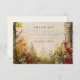 Feiern Sie Ihre Liebe in der Natur mit dieser Waldhochzeit, gerahmt von Waldbäumen, goldenen Herbstblättern, Beeren und Ästen. Der landschaftliche Hintergrund und die Vintage Textur schaffen ein gemütliches, bezauberndes Waldgefühl - ideal für ein Fest im Freien oder für rustikale Herbstfeste.