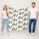 Eine Fleecedecke mit einem Waldthema aus Aquarellkiefern und einem Hirsch und Hirsch in einem wiederholten Muster.