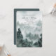 Ce faire-part de mariage a une moody aquarelle forêt remplie de brouillard. Les couleurs utilisées incluent le vert de la forêt avec des notes de sauge. En haut se trouve le texte stylisé qui contient les noms de la mariée et du marié. Les détails de l'invitation sont en vert foncé et sont personnalisables. L'arrière de l'invitation a un arrière - plan vert de toute la forêt profonde qui coordonne avec les couleurs sur l'avant. Un excellent moyen pour les clients invitations à votre mariage.
