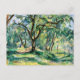Eine Kunstpostkarte mit dem postimpressionistischen Gemälde von Paul Cezanne (1839-1906) mit dem Titel Forest (c. 1890). Eine sonnige Landschaft mit üppig grünen Bäumen.