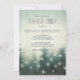 Rustikale Probe mit Fichtenbäumen, die mit Märchenleuchten geschmückt sind.