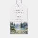Diese eleganten Wasserfarben-Waldsee-Wildblumen-Hochzeitsgeschenkanhänger können mit Ihren Informationen in moderner Typografie personalisiert werden. Entworfen von Thisisnotme©