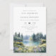 Diese elegante Waldsee-Wildblumen Hochzeitseinladung im Wasserfarbenstil kann mit Ihren Informationen in schicker Typografie und Ihrem Hochzeitswebsite-QR-Code auf der Rückseite personalisiert werden. Entworfen von Thisisnotme