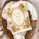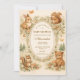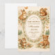 Dieses charmante Wald-Baby-Shower-Design zeigt entzückende Waldtiere, die sich um einen zarten, vintage Rahmen versammeln und eine warme Szene aus einem Bilderbuch schaffen, die perfekt ist, um ein kleines Wesen auf dem Weg zu feiern. Süße Illustrationen eines Hasen, Waschbären, Eichhörnchens und einer Eule sind umgeben von winzigen Pilzen, Kiefernzapfen, Wildblumen und sanfter Waldgrünpflanzung. Die warme, neutrale Farbpalette und der sanfte Wasserfarb-Stil verleihen dem Design ein gemütliches, nostalgisches Kinderzimmer-Feeling, inspiriert von klassischen Kinderbuch-Illustrationen. Perfekt für naturthematisierte Baby-Shower-Partys, Wald-Feiern oder rustikale Waldversammlungen.
