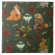 Roter Fuchs, Kaninchen, Eule, Lunamotte, Kiefernmärtchen mit Herbstblättern, Kürbissen, Blume und Eicheln in einer tiefen grünen Umgebung