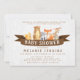Neutral Brown Woodland Lumberjack Baby Dusche Einladung mit Bär, Waschbär, Elch, Hirsch, Eule und Hase.