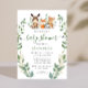 Diese Einladung enthält niedliche Waldtiere mit Blätter Grünpflanzen und Goldfolienakzenten. Geeignet für Jungen- und Mädchendusche.