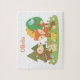 Ein buntes Puzzle, das mit einer Vielzahl von niedlichen Wald-Furry-Tieren kommt, die ein Hirsch, ein Eichhörnchen, das zu einer Ahornmutter hält, ein Hopping-Hasen, ein Raccoon, ein Igel, ein Fuchs und ein Vogel auf dem Baum. Ein Hintergrund von Bäumen, weißen Molkereien, roten Blume und Polka-Dots-Pilzen. Ein herausforderndes, aber erfülltes Puzzle für Kinder als bleibe Zuhause-Aktivität. Personalisieren Sie mit dem Namen und Rahmen des Kindes komplettes Puzzle als dekoratives Stück für das Kinderzimmer.