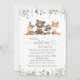 Mit dieser charmanten Babydusche laden Sie Freunde und Familie in Stil und Set zu einem erlebnisreichen Tag ein. Das Design umfasst Waldtiere (Bär, Fuchs, Waschbär, Fawn) und Grünpflanzen auf weißem Hintergrund.