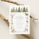Laden Sie Freunde und Familie ein, um Ihren kleinen Geburtstag mit dieser süßen Einladung zu feiern, mit einer Waldszene mit Waldtieren und Kiefern.