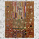 Das Ende der Mauer, Stoclet Frieze (1905-1911) von Gustav Klimt ist ein Vintages Jugendstil-Gemälde mit einem geometrischen Mosaikmuster in Goldtönen. Die Stoclet Frieze ist eine Serie von Symbolismus-Panels und Gustav Klimts letzter großer Wandarbeit. Sie wurden von 1905-1911 im Speisesaal des Palais Stoclet in Brüssel gemalt. Die Paneele von Klimts Fries enthalten abstrakte Motive, stilisierte Motive (Baum des Lebens) und gearbeitete (Erfüllung und Erwartung). Das Mädchen, das unter dem Baum des Lebens tanzt, repräsentiert die Erwartung. Das Paar, das sich unter dem Baum des Lebens umgibt, repräsentiert Erfüllung. Der schwarze Beute, der im Baum des Lebens sitzt, stellt den Tod dar. Über den Künstler: Gustav Klimt (1862-1918) war ein österreichischer Symbolik-Maler und einer der prominentesten Mitglieder der Wiener Jugendstil-Bewegung.