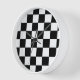 Eine moderne Uhr mit Schachbrettmuster.