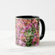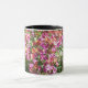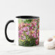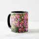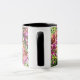 Cette tasse blanche avec poignée et jante noire a une sensation estivale et ensoleillée avec des fleurs murales "Constant Cheer" tout autour.