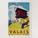 Wallis Schweiz Bauernhof und Berg - Grosses Vintage Travel Poster. Altes Reiseplakat für Urlaubsreisen in die Schweiz.
