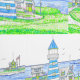Handgezeichnetes Leuchtturm mit blauen Tapeten
